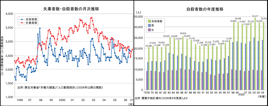 それよりも、20世紀末から3万人に増えたまま一向に減らない自殺。
