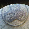 直江兼続 。1560年 – 1620年1月23日、 戦国時代武将。 越後国出身。戦国から安土桃山時代にかけて上杉家の生存を賭けた戦いと外交に尽力。2009年の大河ドラマ「天地人」では、妻夫木聡が演じた。三つ盛り亀甲の中の文様は細い葉説と剣花菱説がある。画像は墓所で撮影した三盛亀甲紋。